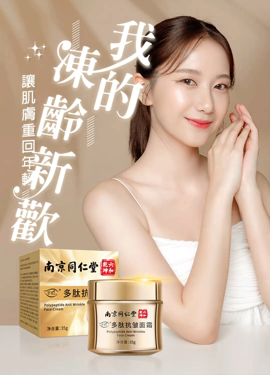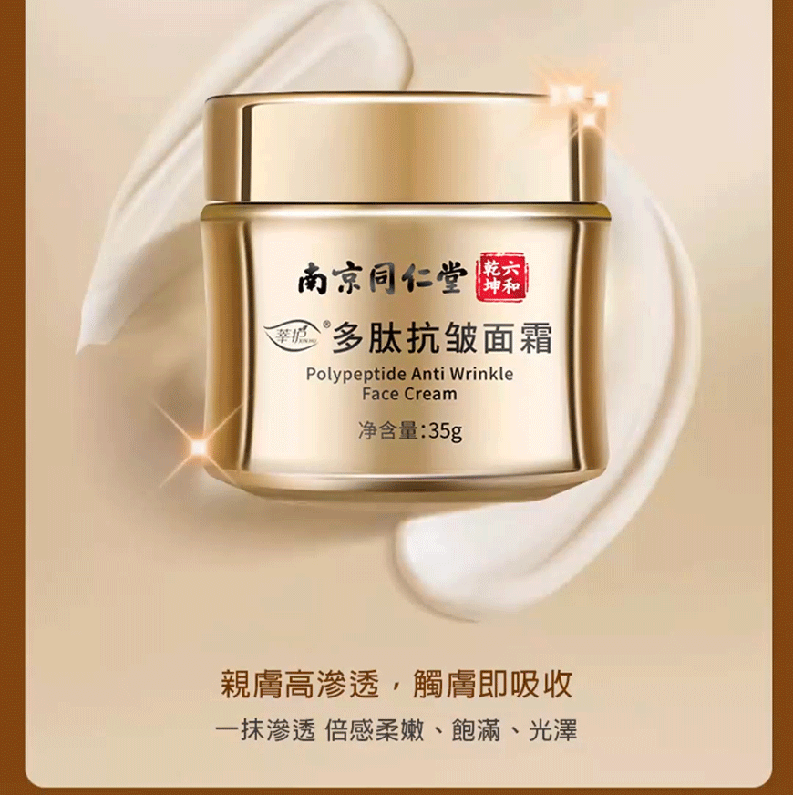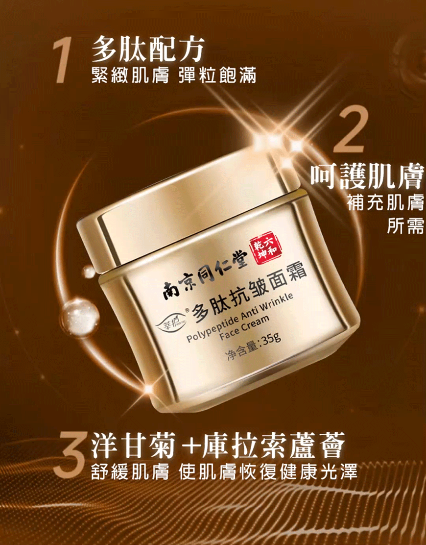 南京同仁堂多肽抗皺面霜,抗衰老緊緻保溼抗皺滋潤嫩膚霜、傾齡抗皺霜補水保溼多肽修護面霜、黃金凍齡霜有效提亮膚色、高效抗皺成份讓肌膚重回年輕的抗氧化抗衰老保養品推薦。